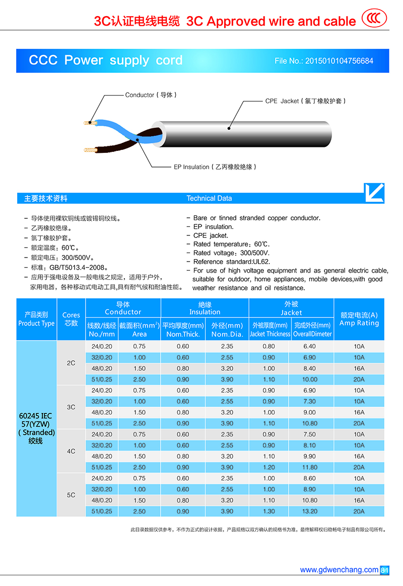 CCC 60227 IEC57(YZW) 电源线
